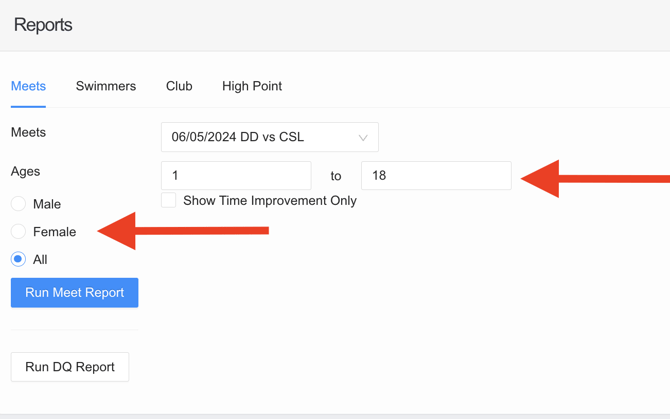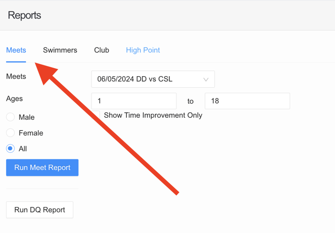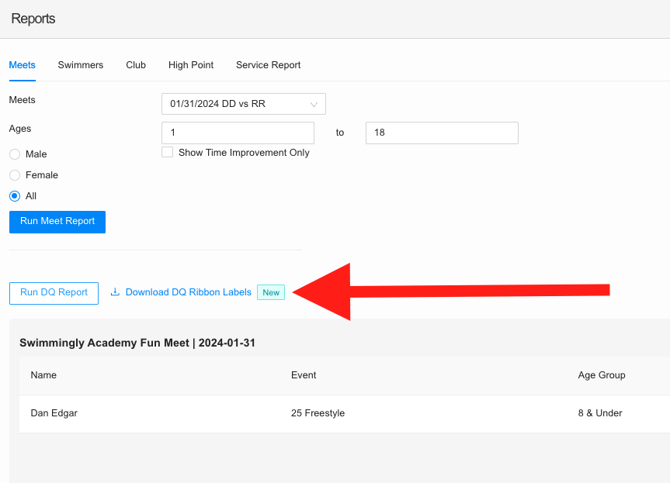 After the swim meet is published to the Clubhouse, run the DQ Report and Download the DQ Ribbon Labels
