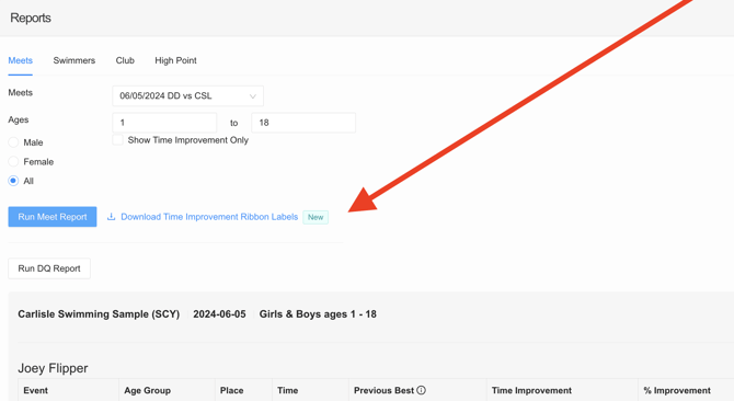 Run the Meet Report and Download the Time Improvement Ribbon Labels