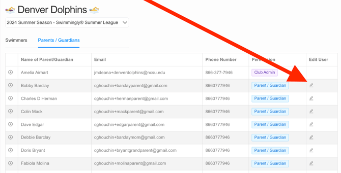 Navigate to the Manage Roster tab and select the Parents/Guardians tab edit the user to promote to a Club Admin
